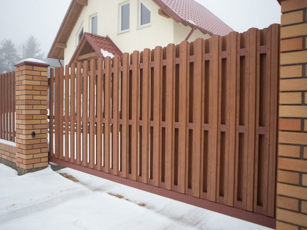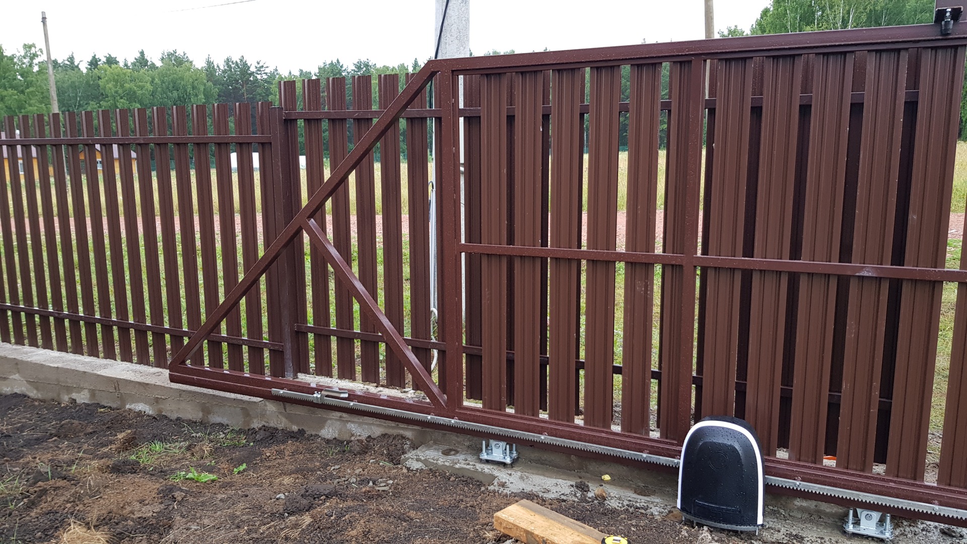 Откатные ворота из евроштакетника с встроенной калиткой и автоматикой