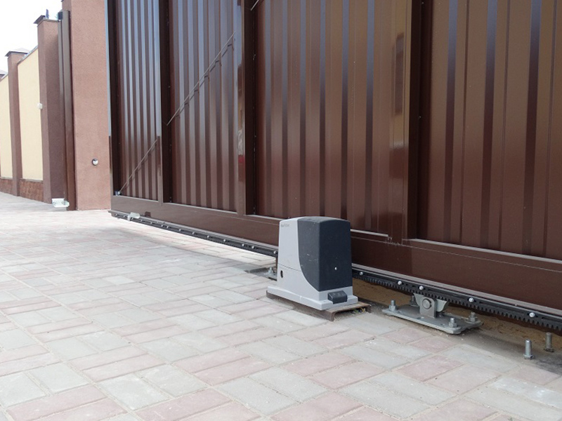 Откатные ворота из профнастила с встроенной калиткой и автоматикой